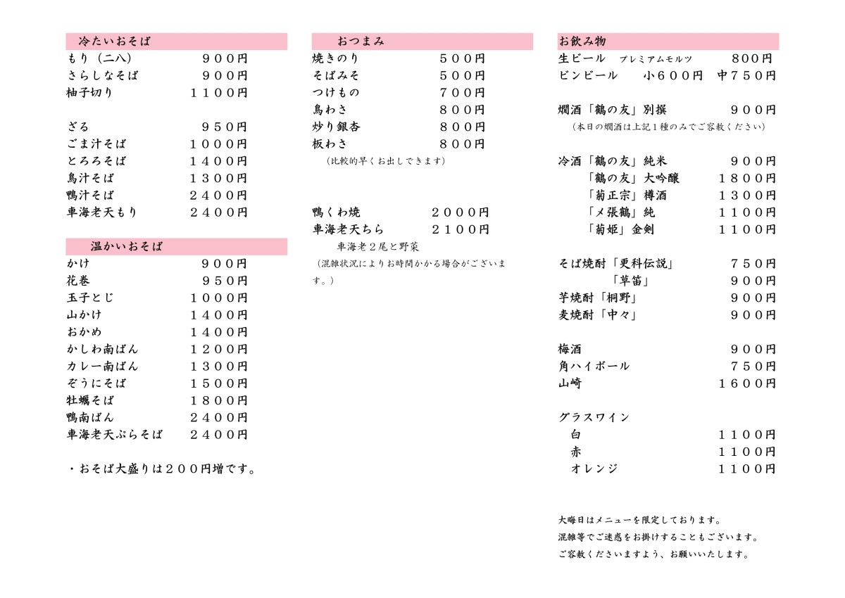 お品書きなど